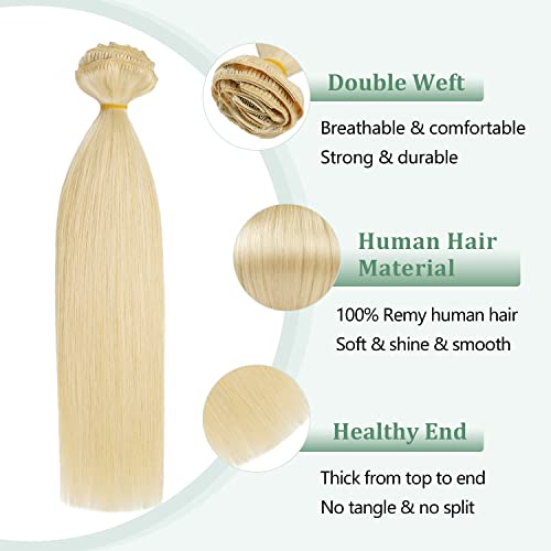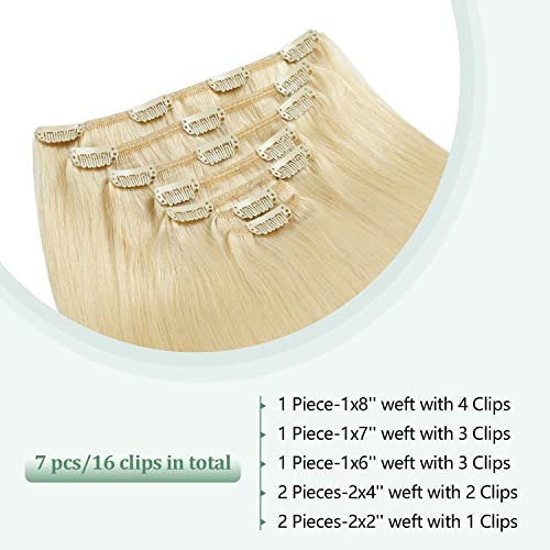 Hair Extensions Clip in Real Human Hair 14 inch Bleach Blonde Clip in Hair Extensions 105g Straight Thick Double Weft Natural Human Hair Extensions for Women (14inch,7pcs, 105g)
