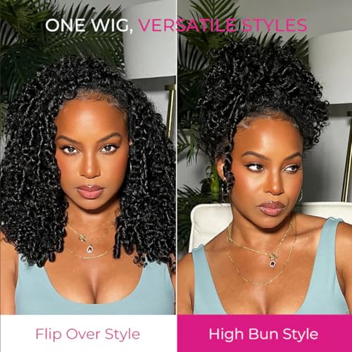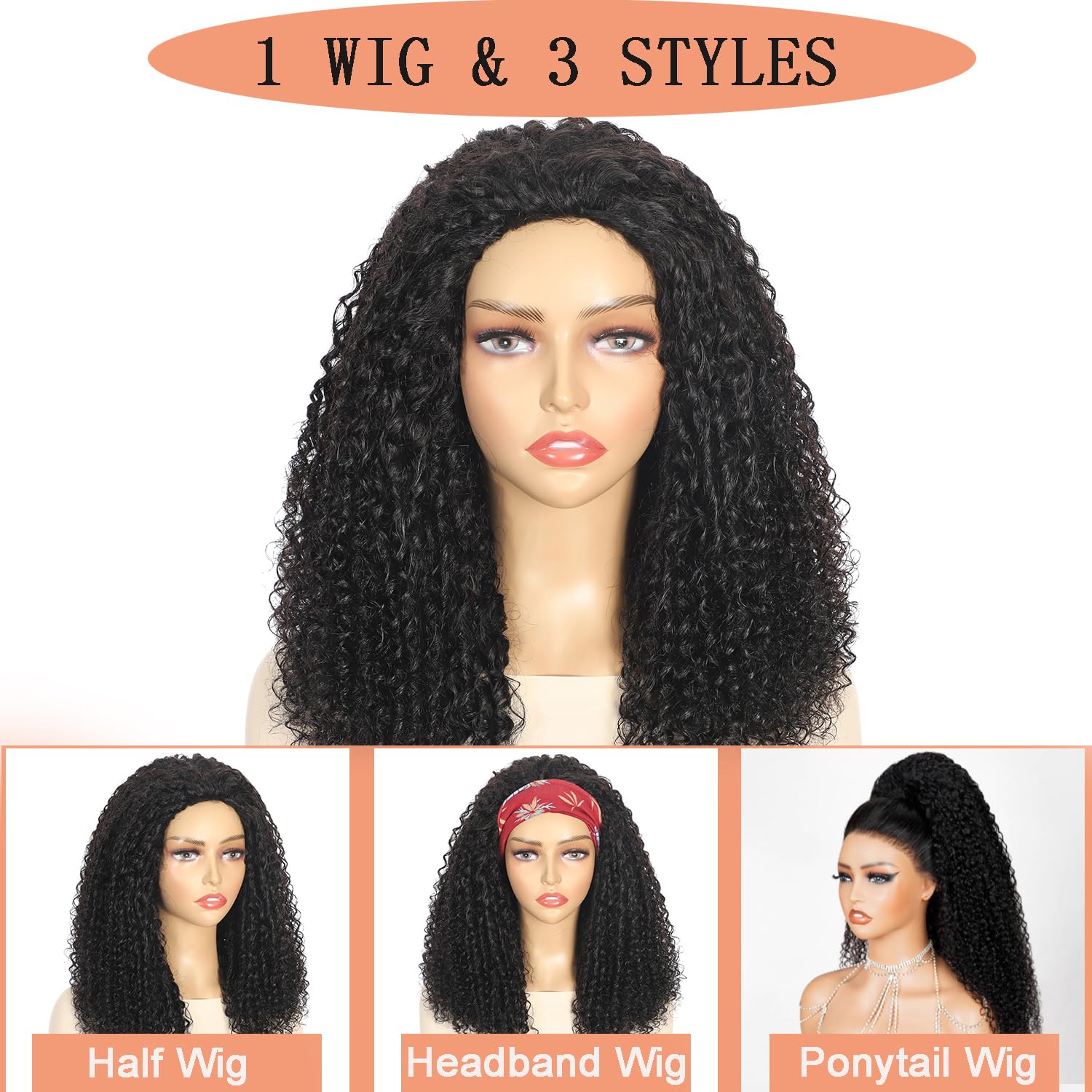 Half Wig Human Hair 3 In 1 Special Curly Half Wigs for Black Women 200% Density Wear and Go Glueless Wig Drawstring Ponytail Seamless Flip Over No Lace Headband Wig Beginner Friendly 16 Inch