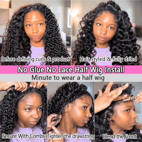 - Beginner-friendly Designed Curly Half Wig Human Hair:Our Newly Designed Glueless Super Curly Wig is Incredibly User-friendly. The Drawstring Make it Easy to Wear Without the Need for Glue or Lace. Your Natural Hairline Blends Seamlessly for a Realistic Look.