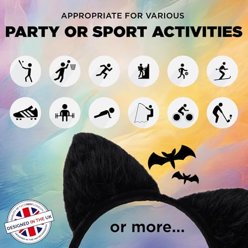 Halloween Cat Ears Headband ? Black Cat Ears Hair Accessory for Cosplay, Fancy Dress, Masquerade & Party Costumes (Soft Style)