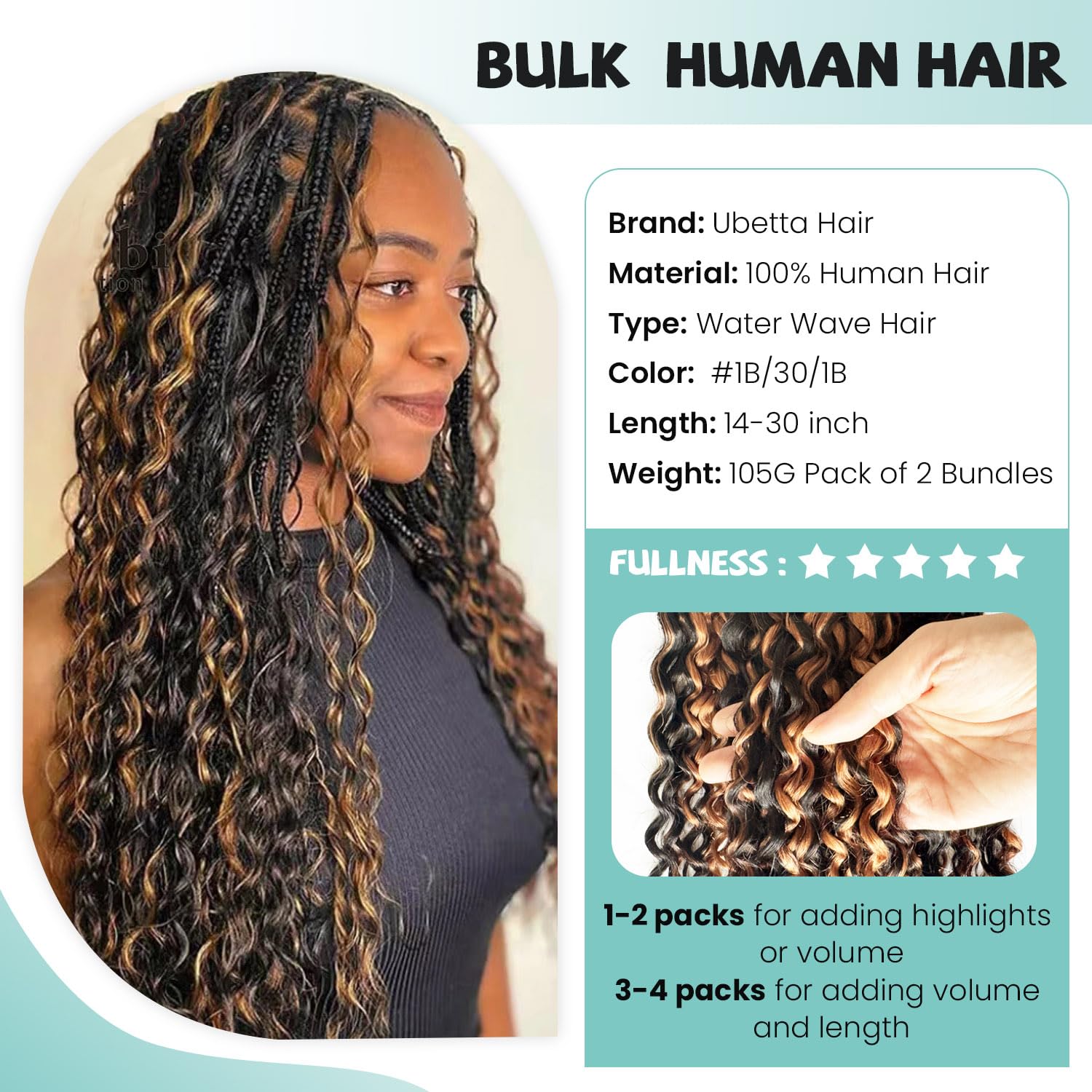 - 【Human Braiding Hair Versatile Styles】: Human hair braiding can be used for many hairstyles,such as water wave, boho curly human hair for braiding,small bohemian braids, goddess braids,knot-less braids,micro braids,box braids,cornrows and twists. Ubetta human braiding hair provide a natural look and feeling,allowing for customization in terms of length, thickness and color. It is a trusted product that empowers black women to embrace their unique style and charm.