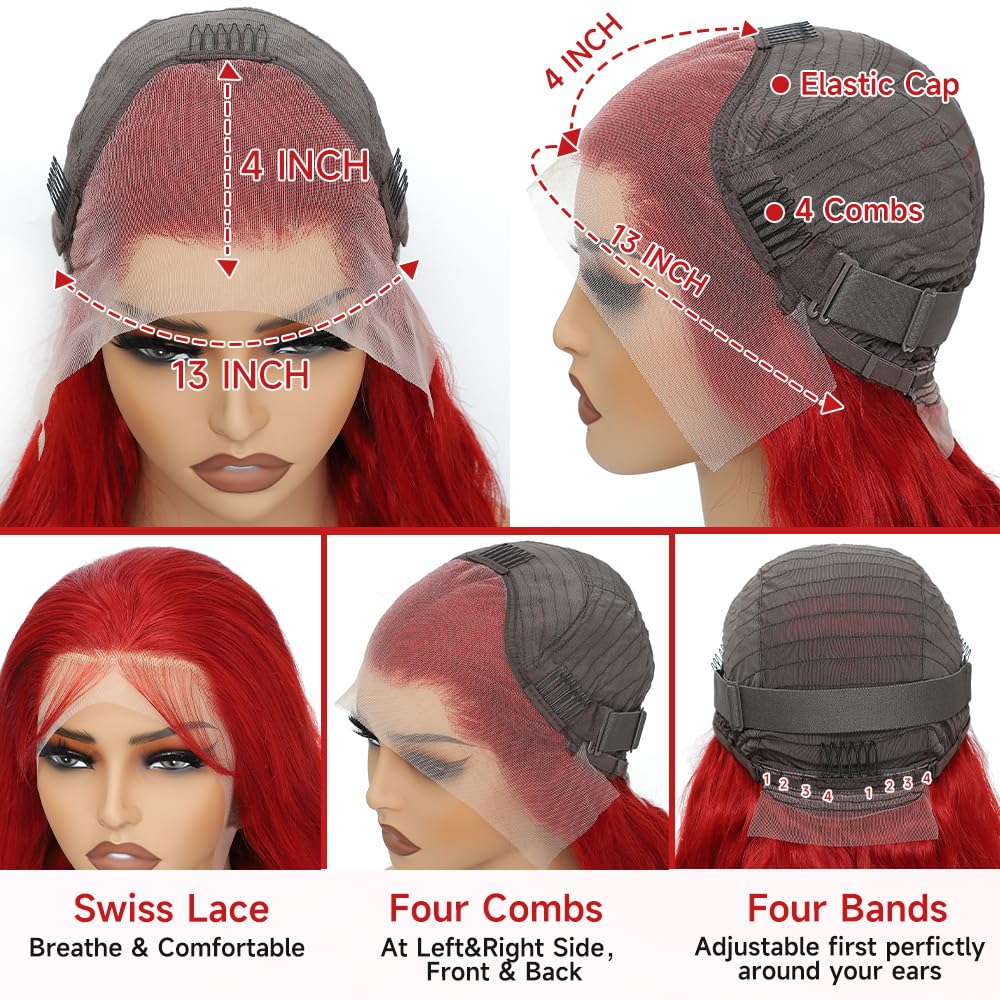 - Red Lace Front Wigs Human Hair Styling: Frontal wigs human hair 13x4 with swiss lace which is soft and breathable, suitable for most skins, it can be freely designed according to the occasion. It can make middle part and side part. achieve a natural and fashionable look with ease.