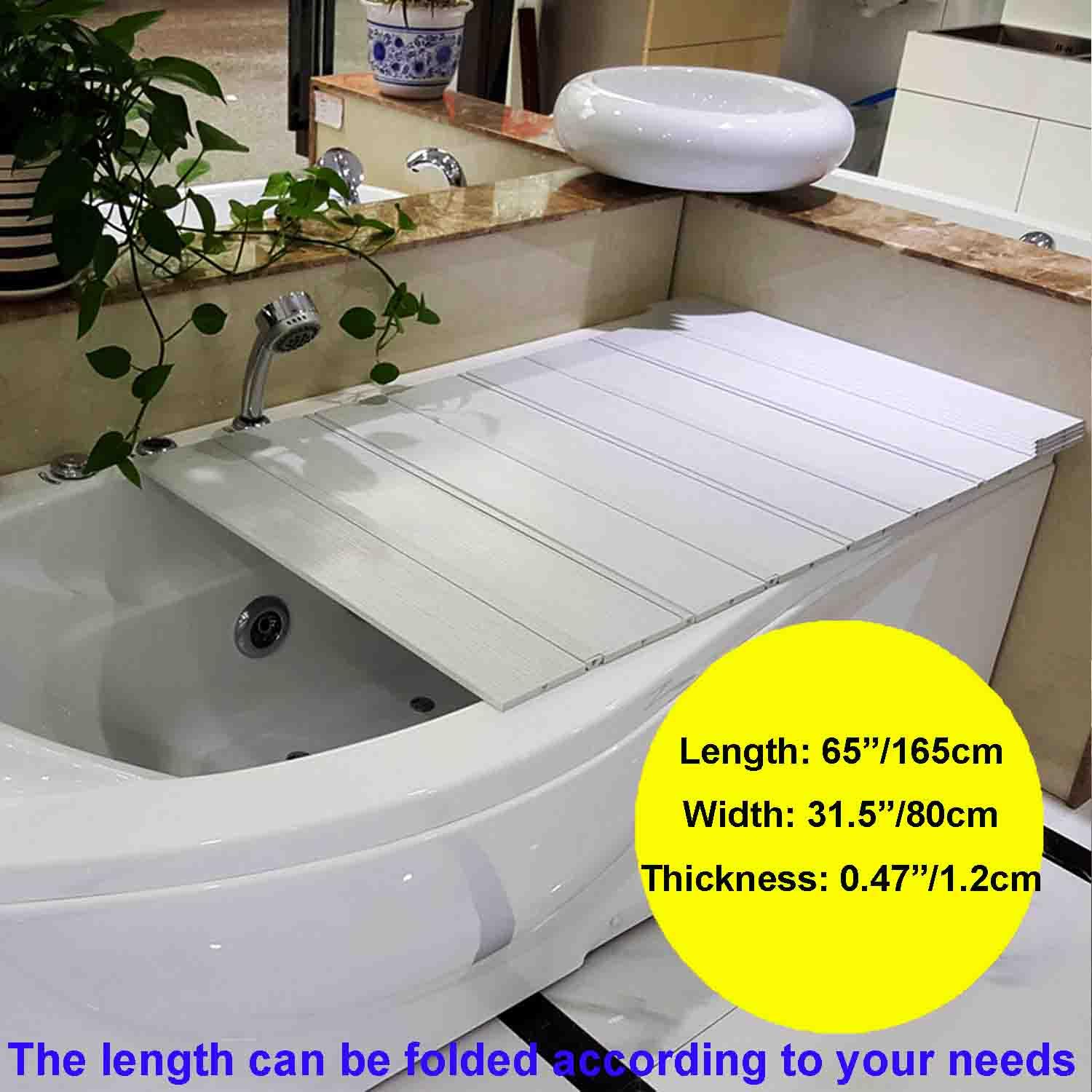 - PACKAGE INCLUDE: It include one pc shutter bath lid, the size is 65"X31.5"X0.47"/165x80x1.2cm, which is suitable for most standard size bathtubs in homes, apartments, hotels, gyms, etc., The weight is 15.8inch