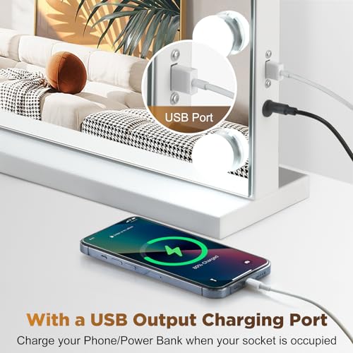 Hollywood Vanity Mirror with Lights, 15 Bulbs 23 x 18 Inch Makeup Mirror with USB Charging and 10x Magnification, Touchscreen 3 Lighting Modes