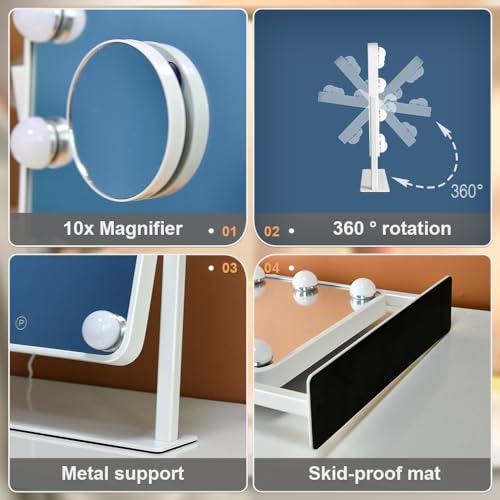 - Memory function and Smart Touch Control: The Hollywood vanity mirror has 3 smart buttons for control, with a short click to turn on/off the lights and short/long presses to adjust color temperature and brightness. The mirror remembers the last brightness and color used.