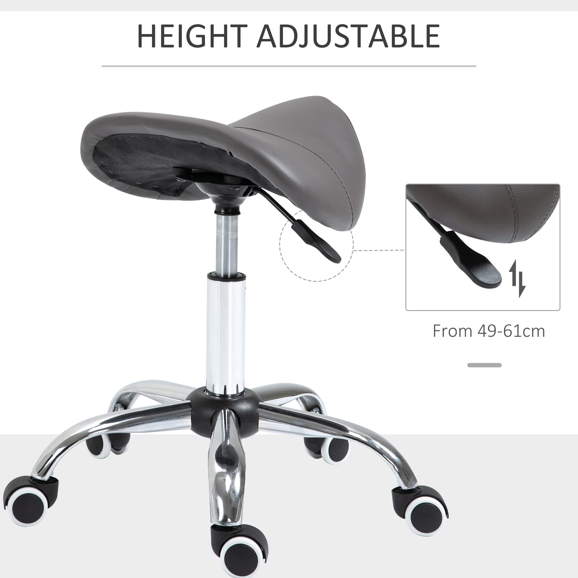 HOMCOM Ergonomic Rolling Saddle Stool PU Leather Hydraulic Spa Stool Height Adjustable Swivel Drafting Medical Salon Chair, Grey