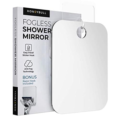 HONEYBULL Fogless Shower Mirror for Shaving ? Anti-Fog Acrylic Mirror with Razor Holder, No-Drill Wall Mount, Flat Design for Steam Showers, Medium 6x8in
