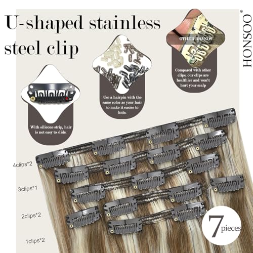 Honsoo Balayage Hair Extensions Real Human Hair Clip Ins 16in Ash Blonde To Platinum Blonde 120g 7pcs Can Be Styled Hair Extensions For Thin Hair