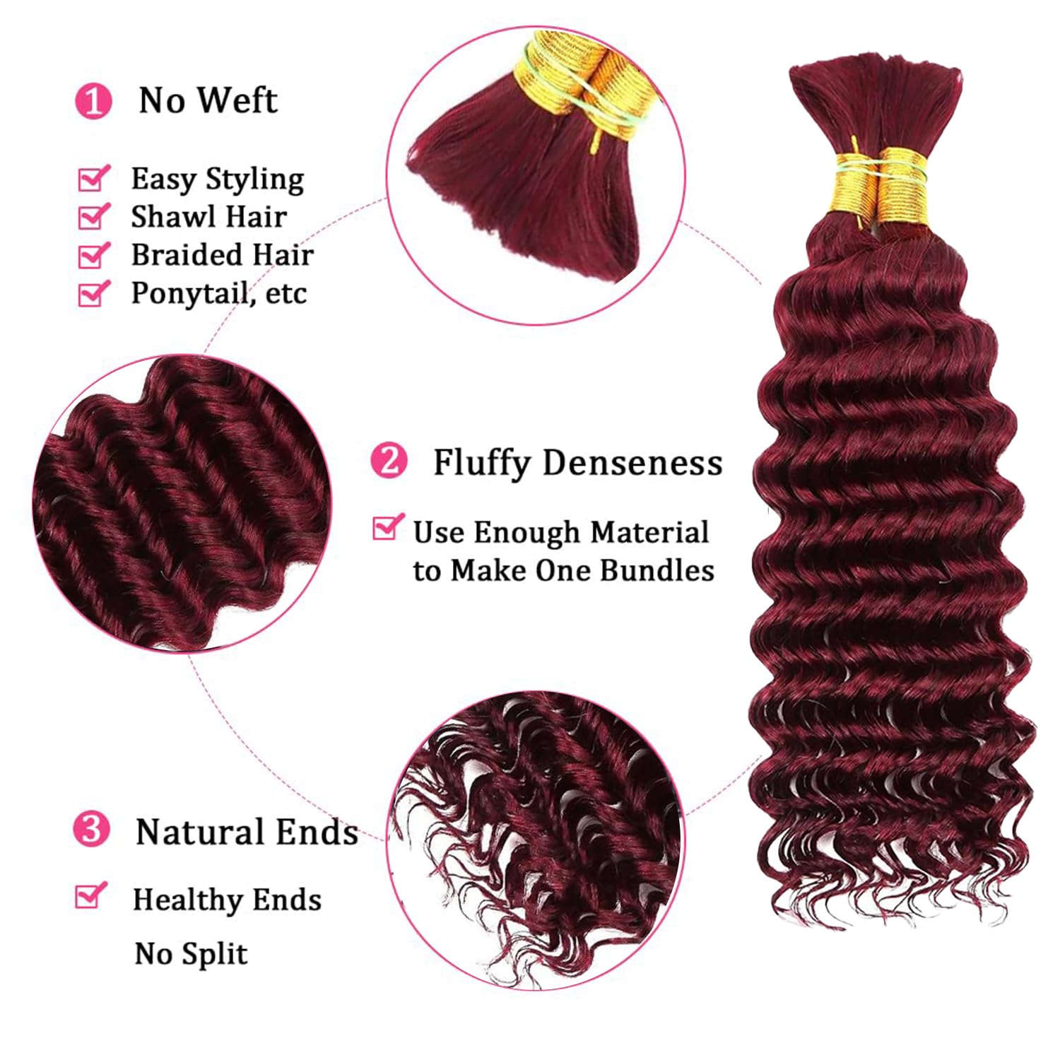 Human Braiding Hair 2 Bundles 100g 28Inch Deep Wave Bulk Human Hair for Braiding No Weft Curly Braiding Hair Bulk Curly Human Hair for Boho Braids 12A Brazilian Virgin Hair Extensions 99J