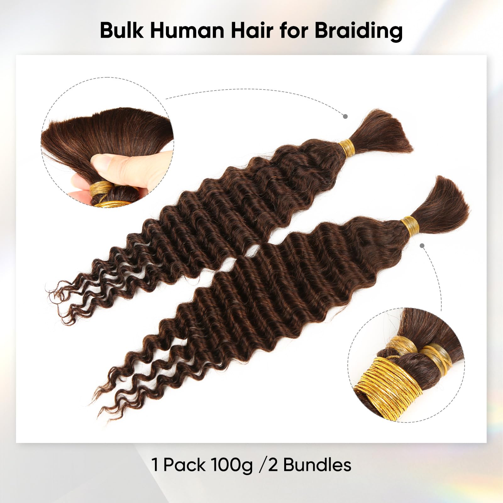 - Bundles Human Hair Specifications: Each set of wet and wavy braiding hair contains 2 bundles, with a total weight of 100g. If You Like Full Head Braids, we Recommend You Purchase 3-4 Packs.