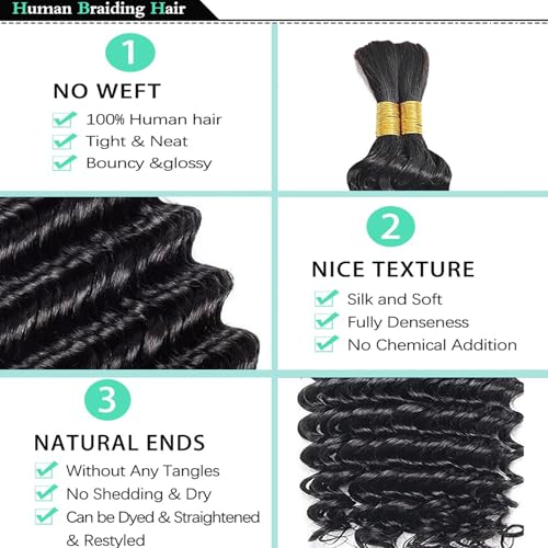 - Human Braiding Hair Features : Deep wave bulk human hair for micro braids can be dyed, bleached, curled, restyled. The braiding hair itself has no shedding, no tangle, no smell, or chemicals. Human hair bundles for braiding is not attached to a weft or track, and comes in loose bundles.