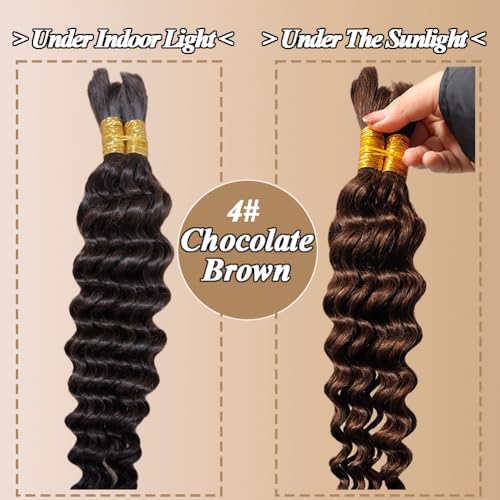 - A Wide Variety Of Styling Use With Deep Wave Bulk: No Weft Human Hair For Braiding Chocolate Brown, Can Be Used To Make Bohemian Braids, Knotless Braids, Locs And So On. Suitable For Date, Travel, graduation And Birthday