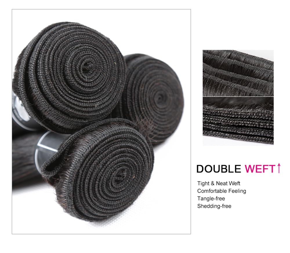 - ❤ Three Bundles Hair Weave: Unprocessed Brazilian Virgin Human Hair Straight, Full Volume, Double Weft, No Shedding, No Tangle, No Bad Smell.