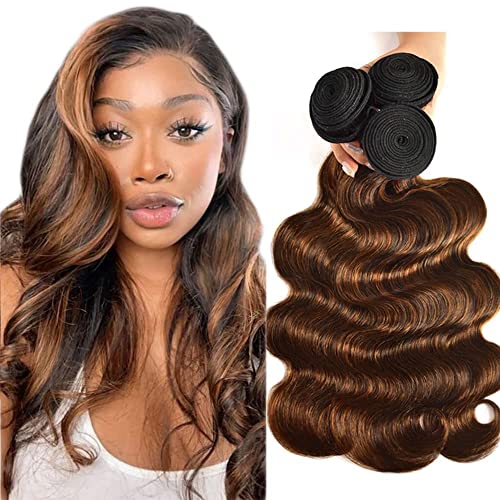 Human Hair Bundles 8 10 12 Inch Chocolate Brown P4/30 Body Wave Bundles Human Hair 100% Unprocessed Soft Sewn In Hair for Black Women with Double Weft