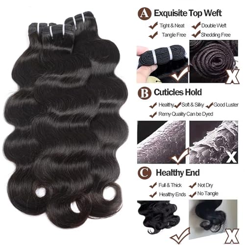 - Body Wave Bundles Human Hair Quality: natural color human hair bundles, strong double machine weft, exquisite top weft, tight and neat, full and thick, tangle free and no shedding.