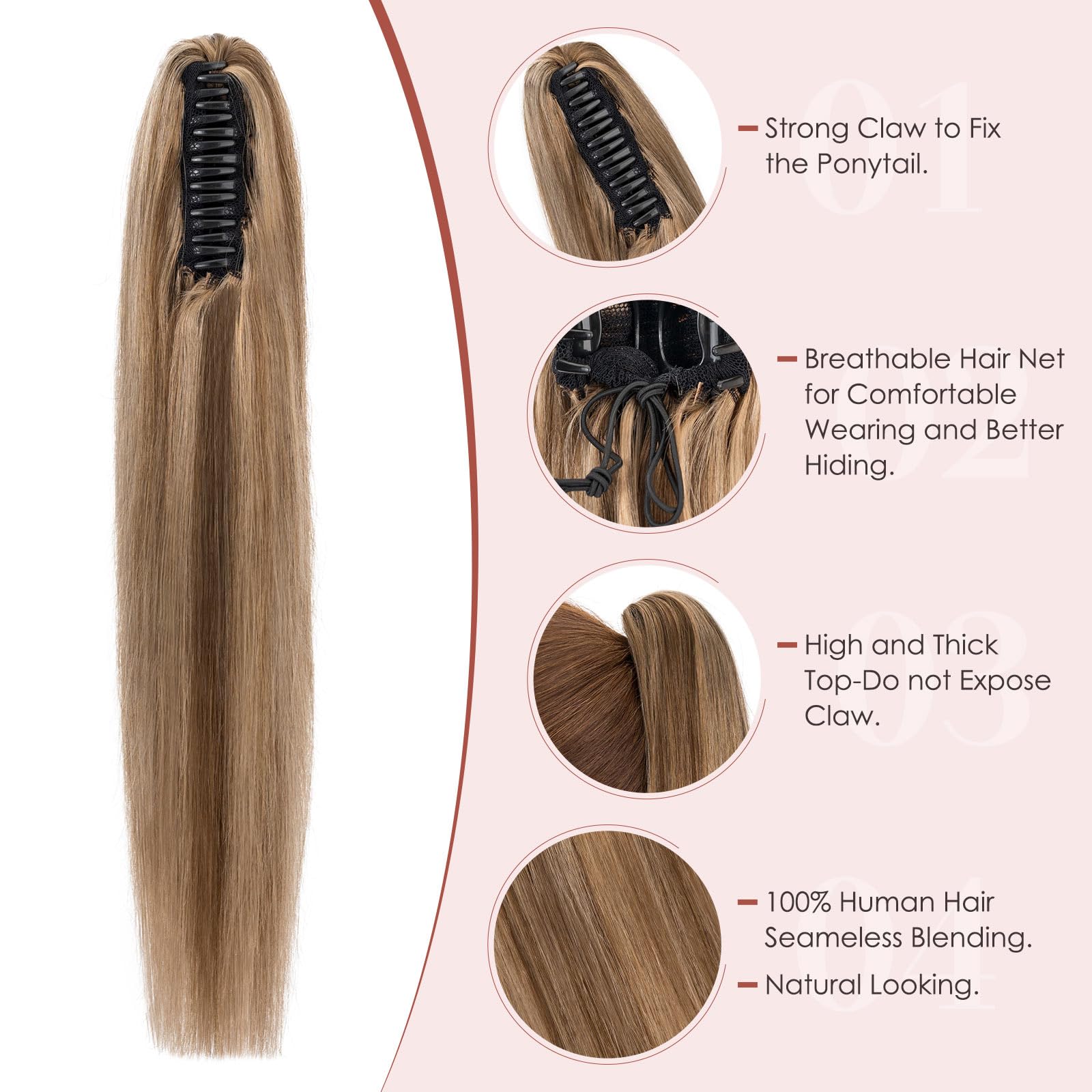 Human Hair Claw Clip Ponytail, Claw Clip Human Hair Ponytail,Effortless Application with Secure Hold,Style in Seconds,Quick Styling Solutions for Busy Lives 16"/109g Medium Brown Mix Dark Blonde