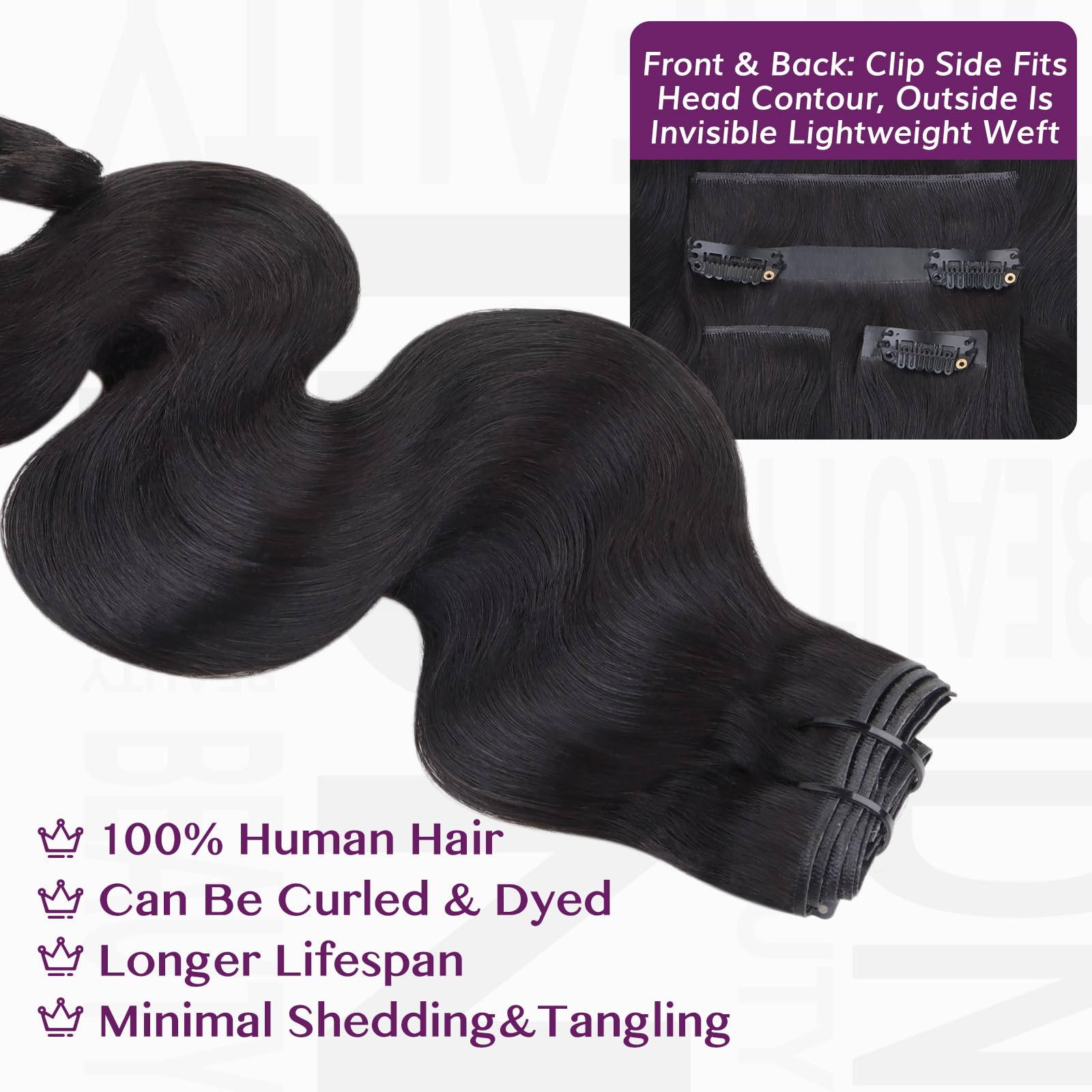 - High-End Human Hair: Healthy virgin human hair, smooth, tangle-free, durable, and hand-woven to ensure more even hair volume, so each clip may be slightly different.With proper care, hair extensions can be enjoyed for more than a few months