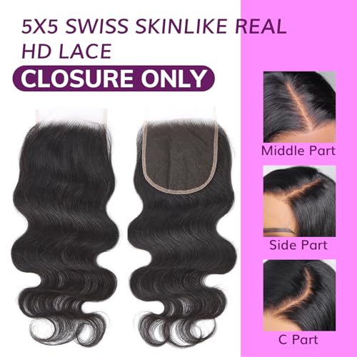 IDN BEAUTY SKINLIKE REAL HD 5x5 Lace Closure Human Hair 18 Inch Body Wave Closure Bleached Single Knots Ultra-thin 5x5 HD Lace Closure Virgin Human Hair 0.1 mm Pre Plucked Hairline