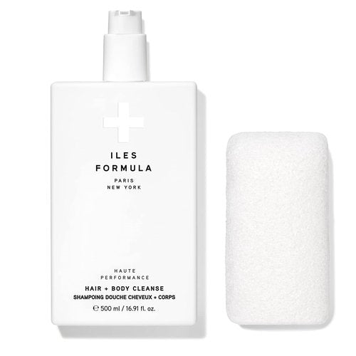 ILES FORMULA Haute Performance Hair + Body Cleanse + Natural Sponge - Gently Cleanse & Nourish Hair + Body, Sulfate, Silicone & Paraben Free, 500 ML