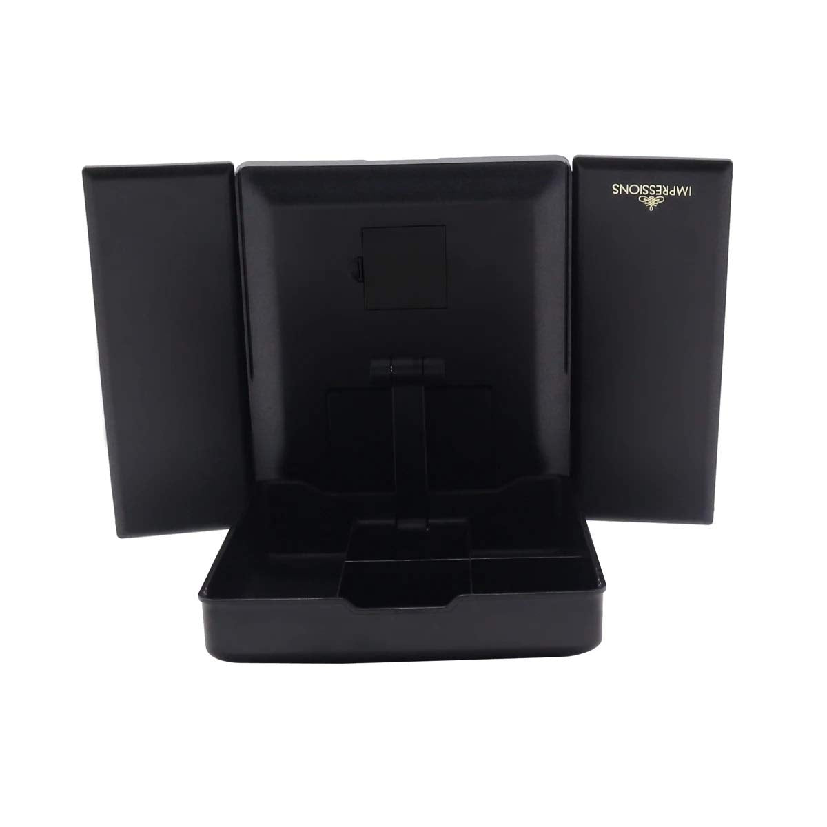Impressions Touch Trifold LED Makeup Mirror with Vanity Organizer, 7X Magnifying Desk Mirror with Standing Base and USB Cable (Black)