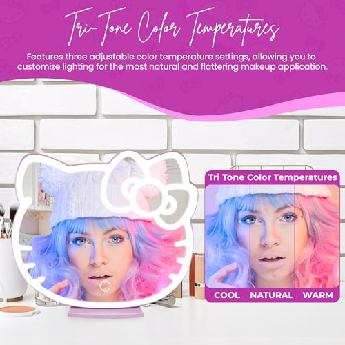- HELLO KITTY MIRROR: Our cutely designed lighted mirror for desk with a lovely kitty bow outline. This hello kitty mirror is a perfect addition to your vanity, an elegant light up mirror for makeup