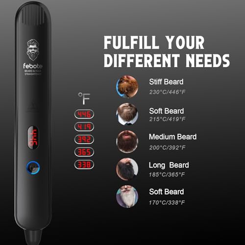 - ¡¼Ultra-Fast Heating Technology & Constant High Temperature Technology¡½ -- With ultra-fast preheating, the comb reaches a temperature of 338¢µ in just 30 seconds, and can achieve a maximum heating temperature of 446¢µ. It features five heat settings ranging from 338¢µ to 446¢µ, suitable for most beard or hair types?whether soft, thin, thick, or curly. The high-quality material and premium gift box make this an excellent gift for men, including friends, dads, fathers, coworkers, and employees.