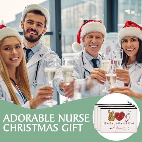 Irenare 30 Pcs Nurse Appreciation Week Gifts Nurse Survival Kit Canvas Makeup Bags Cosmetic Peace Love Nursing Travel Toiletry Case Earpiece Toiletry Zipper Pouch Bag Thank You Gift(Nurse)