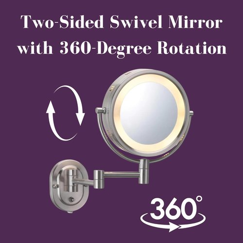 - STUNNING WALL-MOUNT MIRROR - Upgrade your bathroom with this modern, nickel-finish makeup mirror! This plug in mirror has a 6’ coiled power cord. This magnifying makeup mirror is easy to install and attached to a 14-inch arm that extends from the wall.