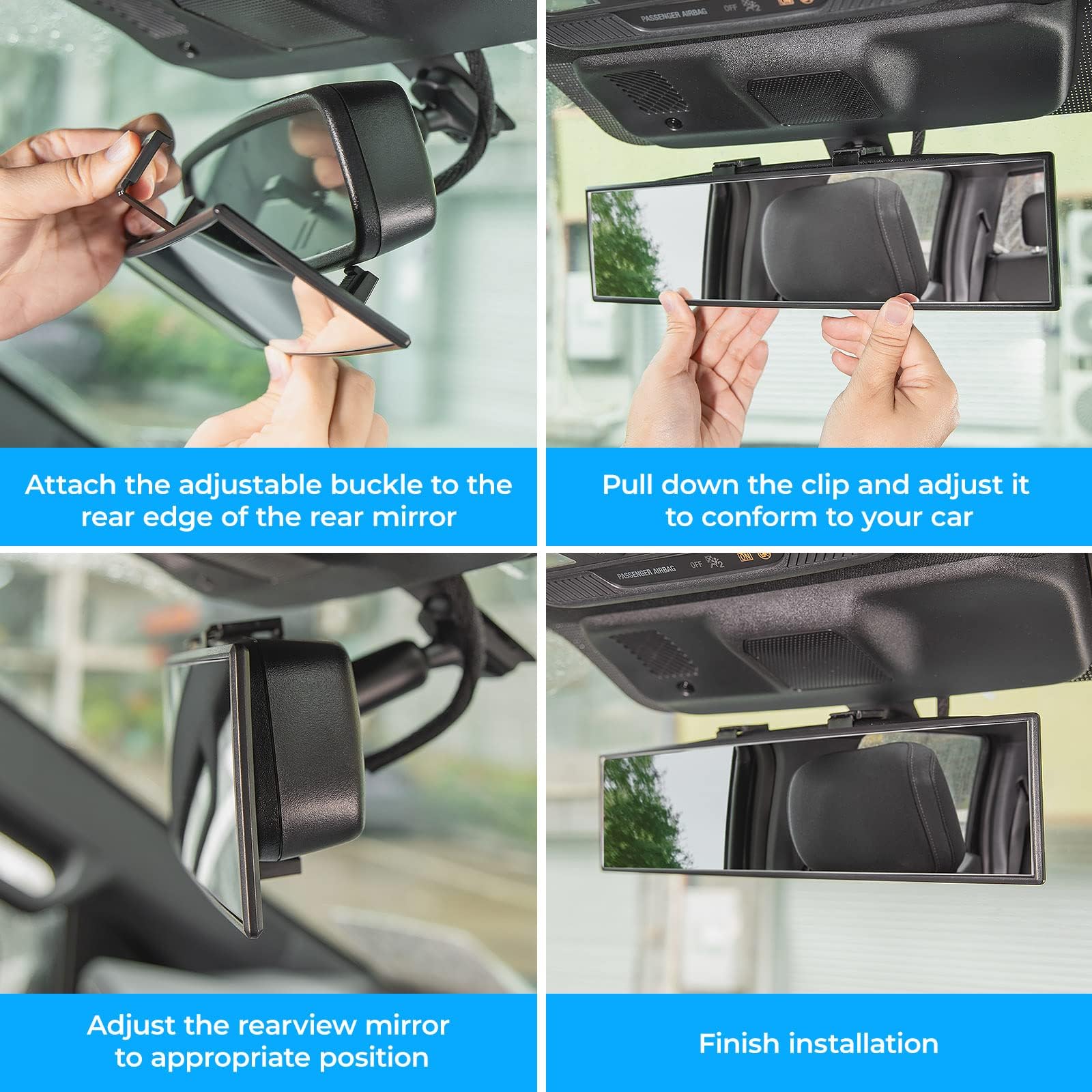 - 【UNIVERSAL】: The size of the rearview mirror is 11.81 x3.1 inch, longer than most the rearview mirror, which means can offer you a wider field of view than others, and car clip-on design fits universal vehicles, like a car, SUV, CRV, Vans, and Truck