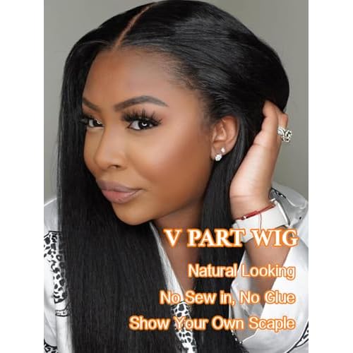 - ¡¼Upgrade V Part Wig¡½: Yaki V Part Wig Human Hair Wear And Go Glueless Wig Can Blend Your Natural Hair Well. Breathable & Comfortable. No Glue & No Sew In. No Stocking Cap Needed. Super Secure And Easy Installation. Upgraded U Part Wig, We Made It Into A V Shape Not U Shape.