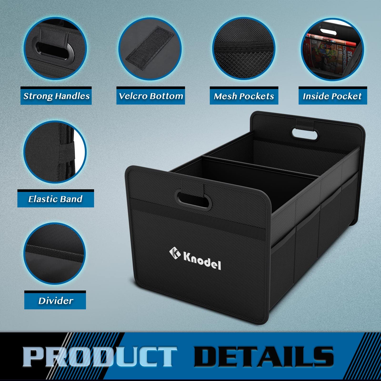 - DURABILITY AND HIGH QUALITY: The Knodel Trunk Organizer is made of high-quality 600D Oxford Polyester material with reinforced handles, which can withstand the weight of heavy items, and will last you through years of repeated use. In addition, our product features a non-slip bottom to prevent sliding.