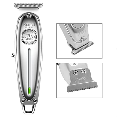 Kemei 1949 Trimmer Professional Hair Clippers for Men Zero Gap Electric Cordless Beard/Hair Trimmer Rechargeable T-Blade Haircut Machine for Stylists and Barbers Grooming Kit, Silver