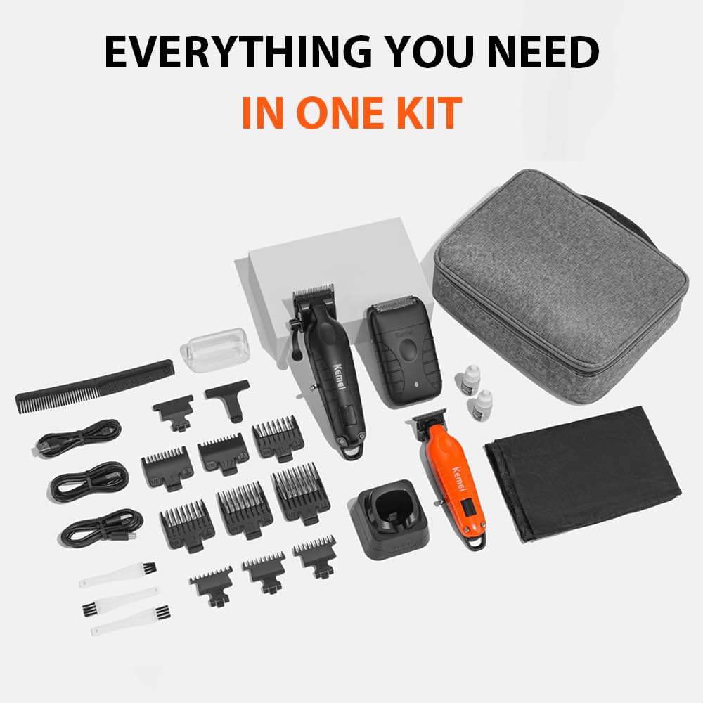 KEMEI Hair Clippers for Men Professional, Barber Clippers and Trimmers Set, Foil Shaver for Men,Cordless Hair Clippers and Barber Kit, Hair Cutting Kit, KM-2293Orange, KM-PG2290D, KM-T95