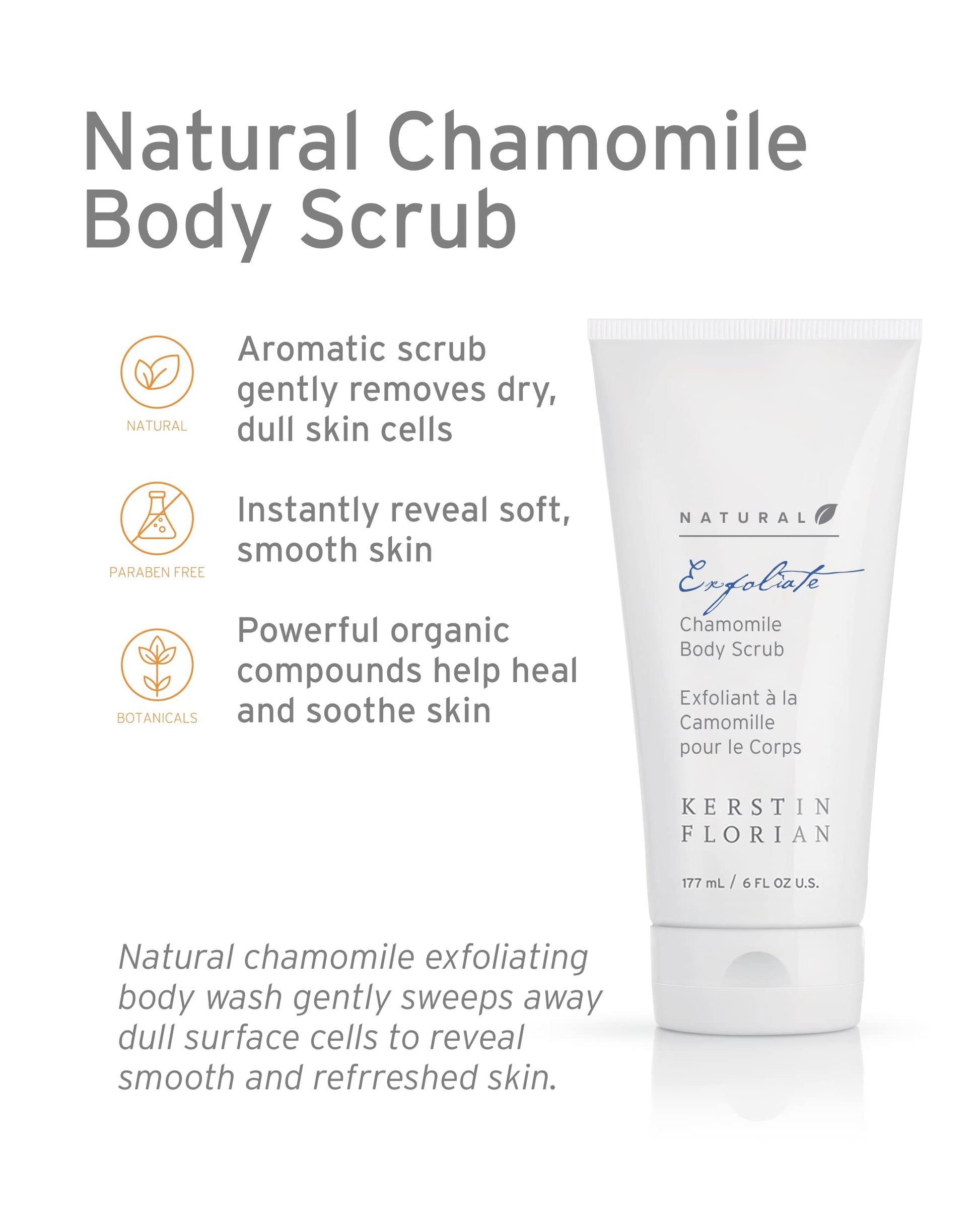 Kerstin Florian Natural Chamomile Body Scrub | Exfoliating Body Wash for Smooth Skin | Gentle Buffing Grains Reveal Skin's Natural Glow | Organic Bath and Shower Skincare | 6 fl oz