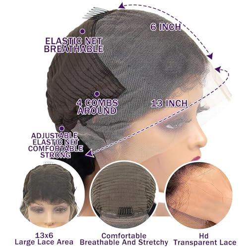 - ¡¼Lace Front Human Hair Wigs Cap¡½Medium Cap Size (21.5 - 22.5 Inch) With Adjustable Straps and 4 Combs, 6 Inch Parting Space, Large Area Lace Wigs, Wear Comfortable, Easy to Install, Durable and Easy to Adjust, Fit Most Customers Head Perfectly.