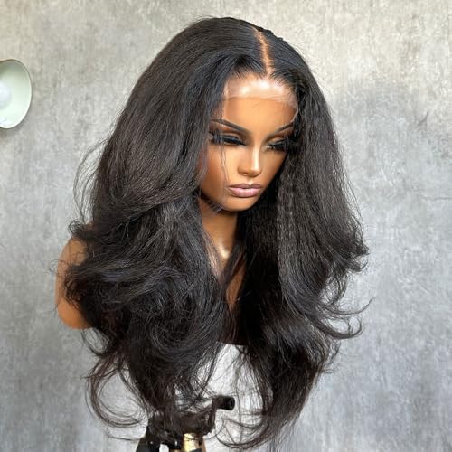 - Kinky straight wig human hair details: Human hair closure wig is pre bleached pre plucked human hair wig. The knots are tiny and invisible, hairline transition is very natural. The transparent lace is breathable and durable, it can blend with all skin tones. Hd transparent lace front wigs human hair looks like it's growing out of your scalp.