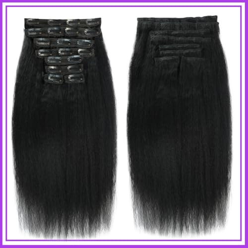 - 3.Kinky Straight Clip ins Details: Kinky straight clip in hair extensions, 100g 8Pcs with 20 clips per set. Natural black color. Multiple choices, 12 Inch-22 Inch. True to length. According to your own hair volume, usually 2 packs can fill your head, increasing length and volume. If you like thicker hair, it is recommended to 3 packs.
