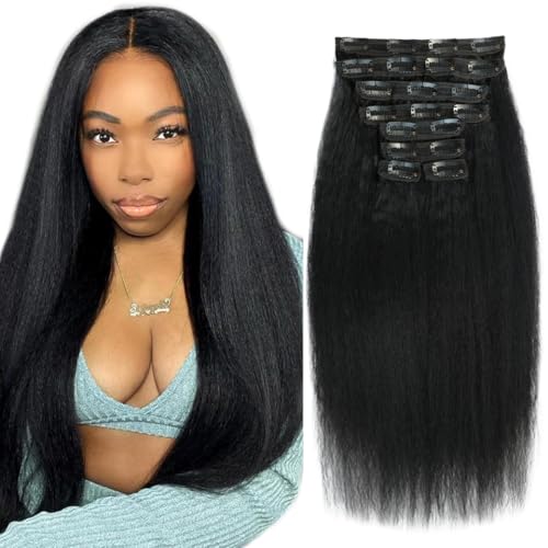 Kinky Straight Clip ins 26 Inch Clip in Hair Extensions Real Human Hair Yaki Straight Clip ins for Black Women Full Head Brazilian Remy Hair Extensions Double Weft 8Pcs 100g 20 Clips