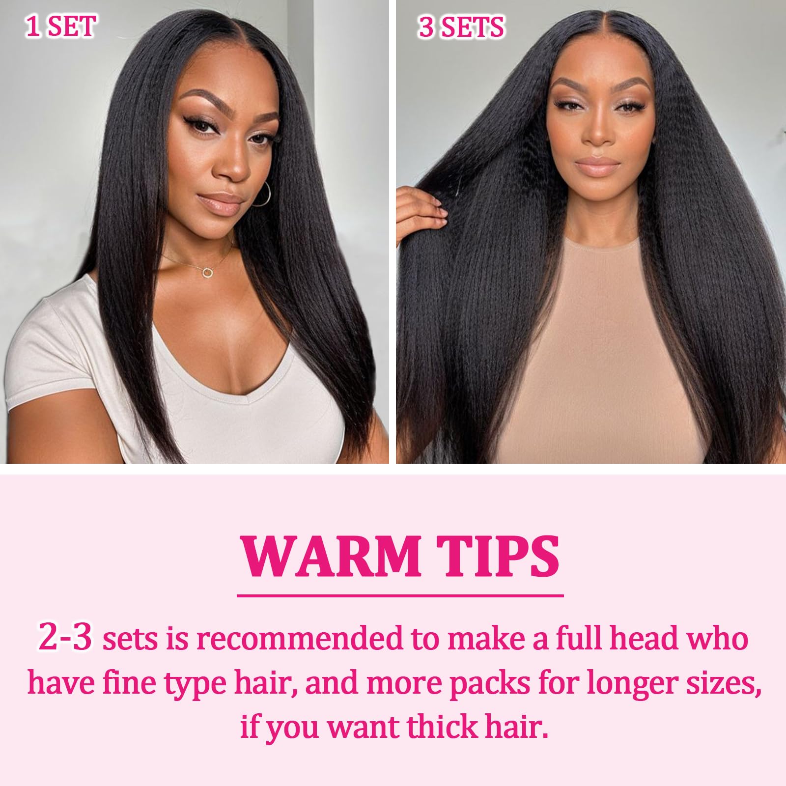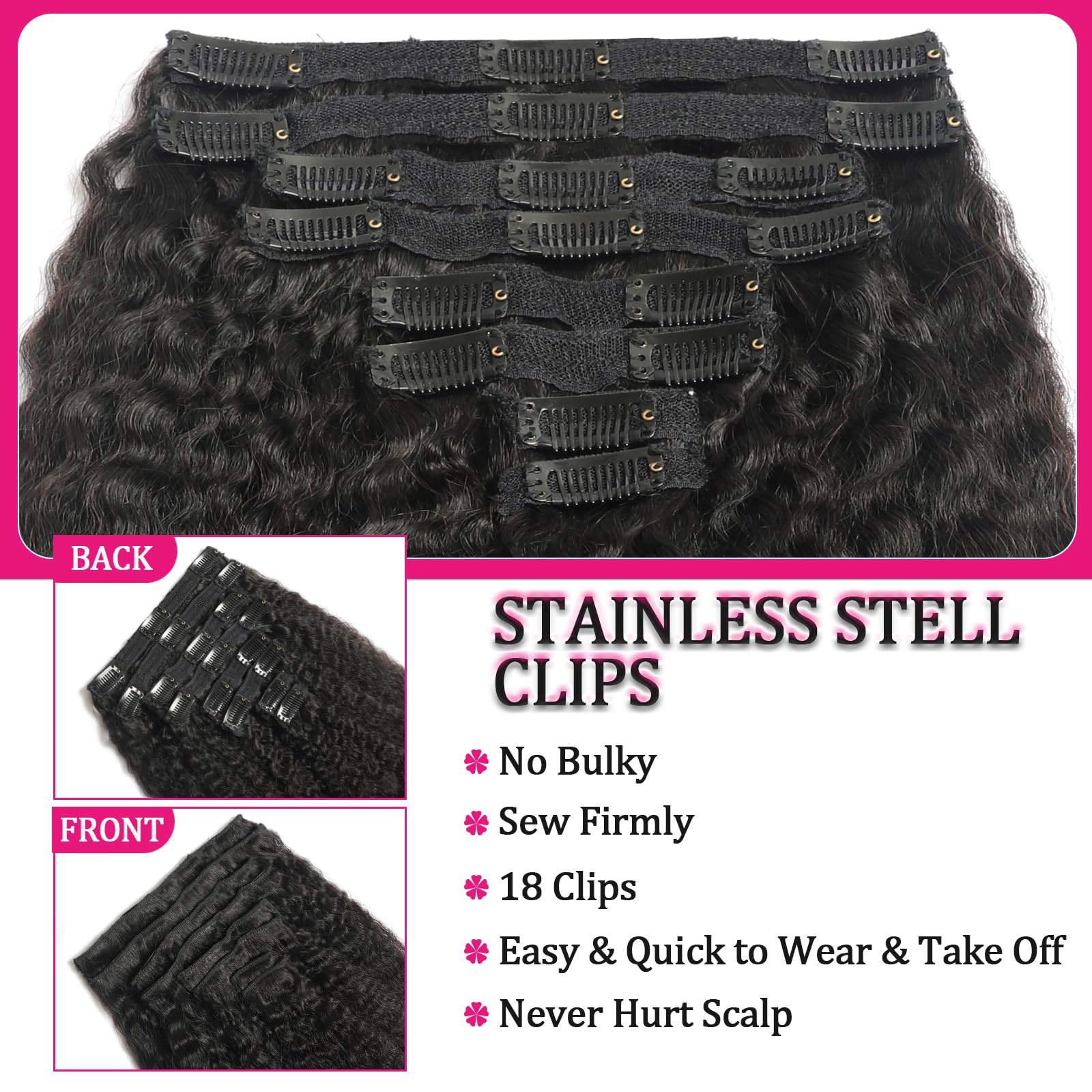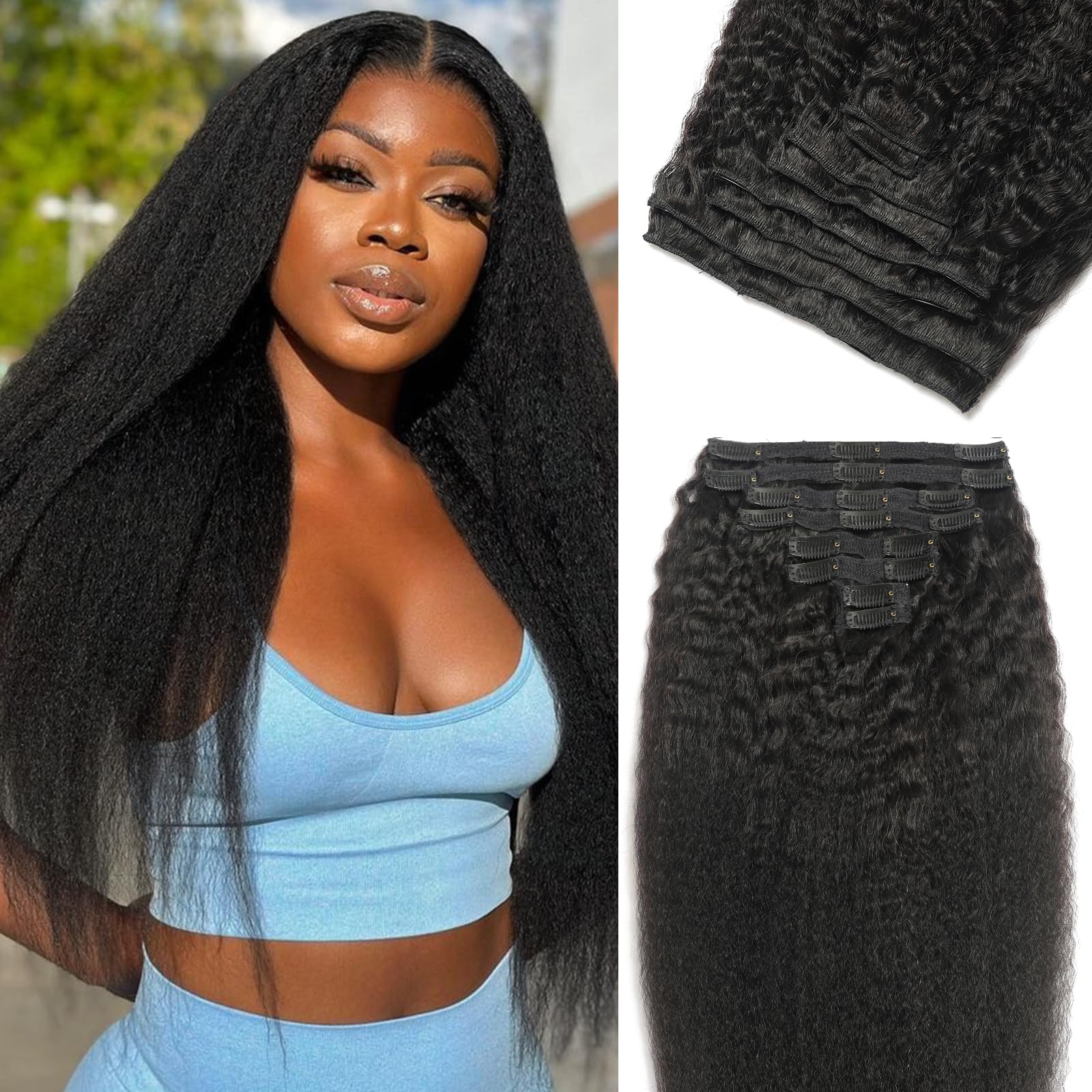 - Easy to Wear Clip in Hair: Our kinky straight hair extensions are simpler and more convenient than other wearing styles. No need to use glue, won't damage your scalp or hair. You can easily add length, volume and dimension to your hair in just a few minutes. Gives you striking hair!