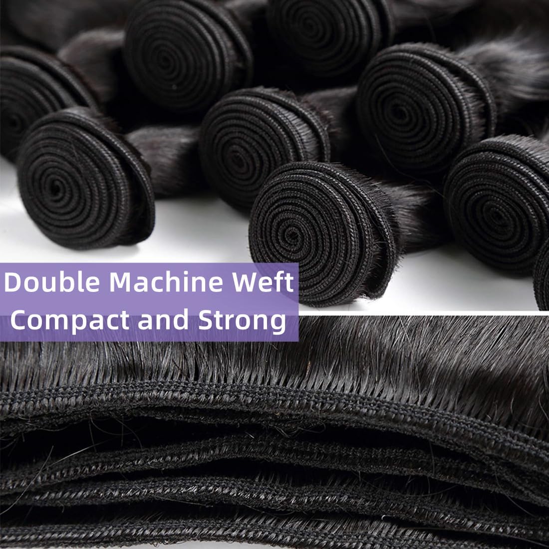- Brazilian Kinky Straight Bundles Human Hair Features: 95-105 g/Bundle, 14-30 Inches In Stock;Double Machine Weft,Compact and Strong;High Elasticity,Tight and Neat;Soft & Silky Hair;No Shedding,No Tangling