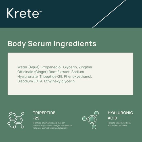 KRETE Hydrating Body Serum for Men - Moisturize, Smooth, Hydrate & Strengthen Your Skin In 30-Seconds, Oil-Free, All Skin Types, with Tripeptide-29 & Hyaluronic Acid