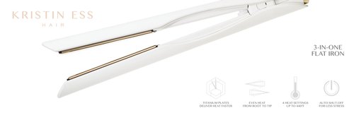 Details: Kristin Ess Hair 3-In-One Titanium Flat Iron Hair Straightener, Curler and Waver - Styling + Frizz Control - Polished S Curls - Dual Voltage - 1 1/4 Inch Rounded Straightener Curler 2 In 1 + Waver