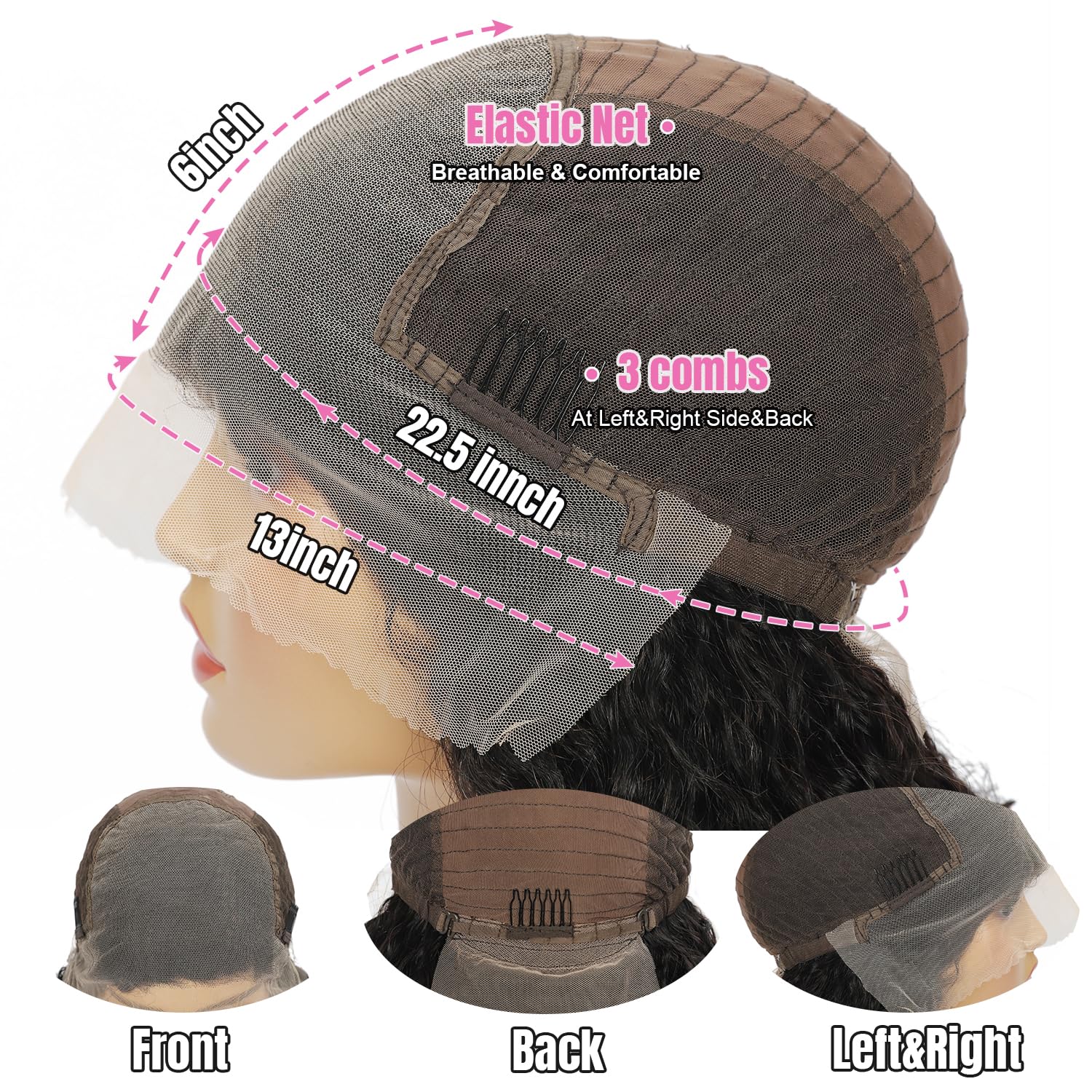 - Wet And Wavy Lace Front Wigs Human Hair Wigs Cap Size:Lace Frontal Wigs Human Hair Cap Size is 22.5Inch Medium Cap with Adjustable Strap and 3 Combs,Durable,18to32 inch Available.Wigs Human Hair Pre Plucked, More Comfortable to Wear