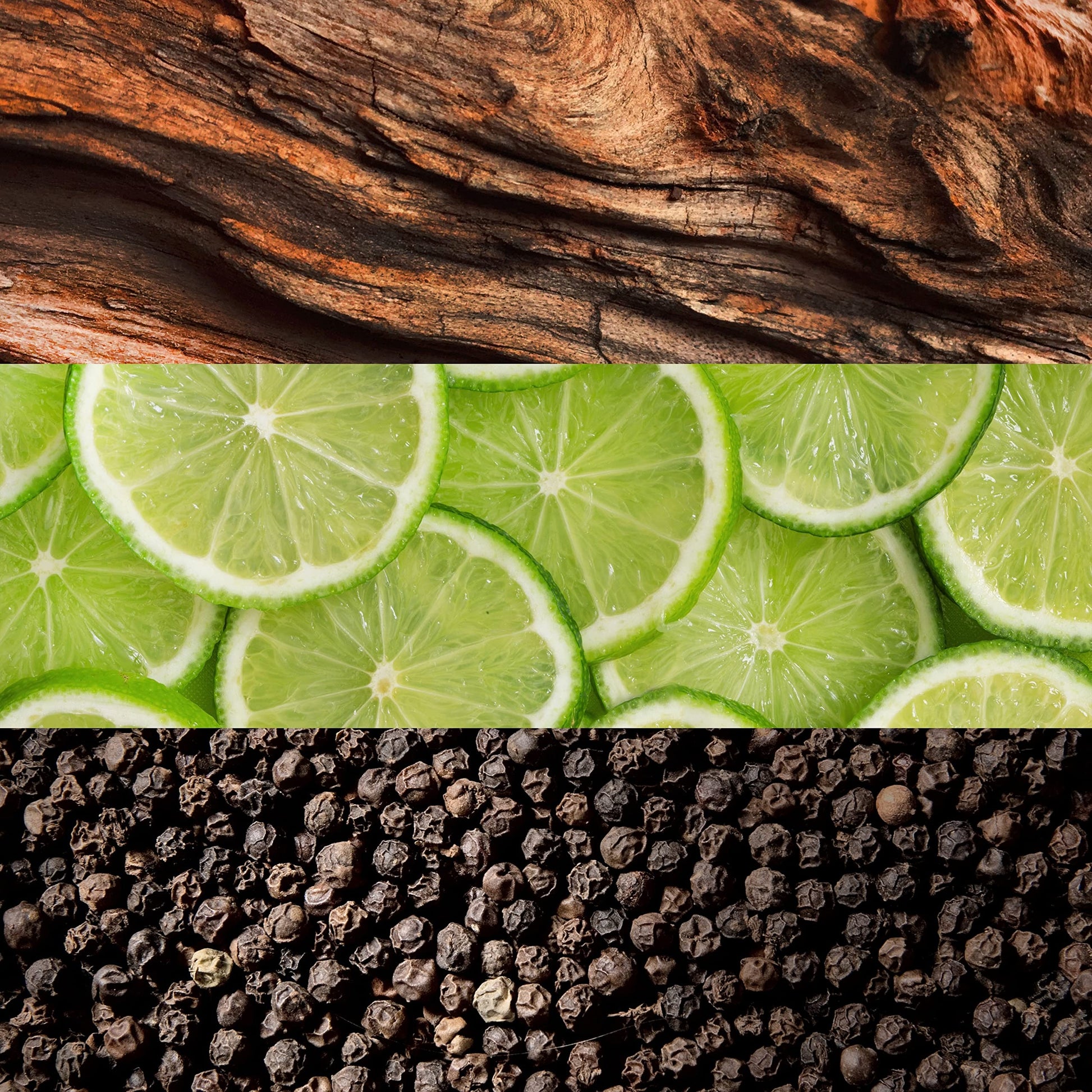 - Top notes are cassia, bergamot, tangerine and tomato leaf; middle notes are pepper and rose; base notes are sandalwood and patchouli