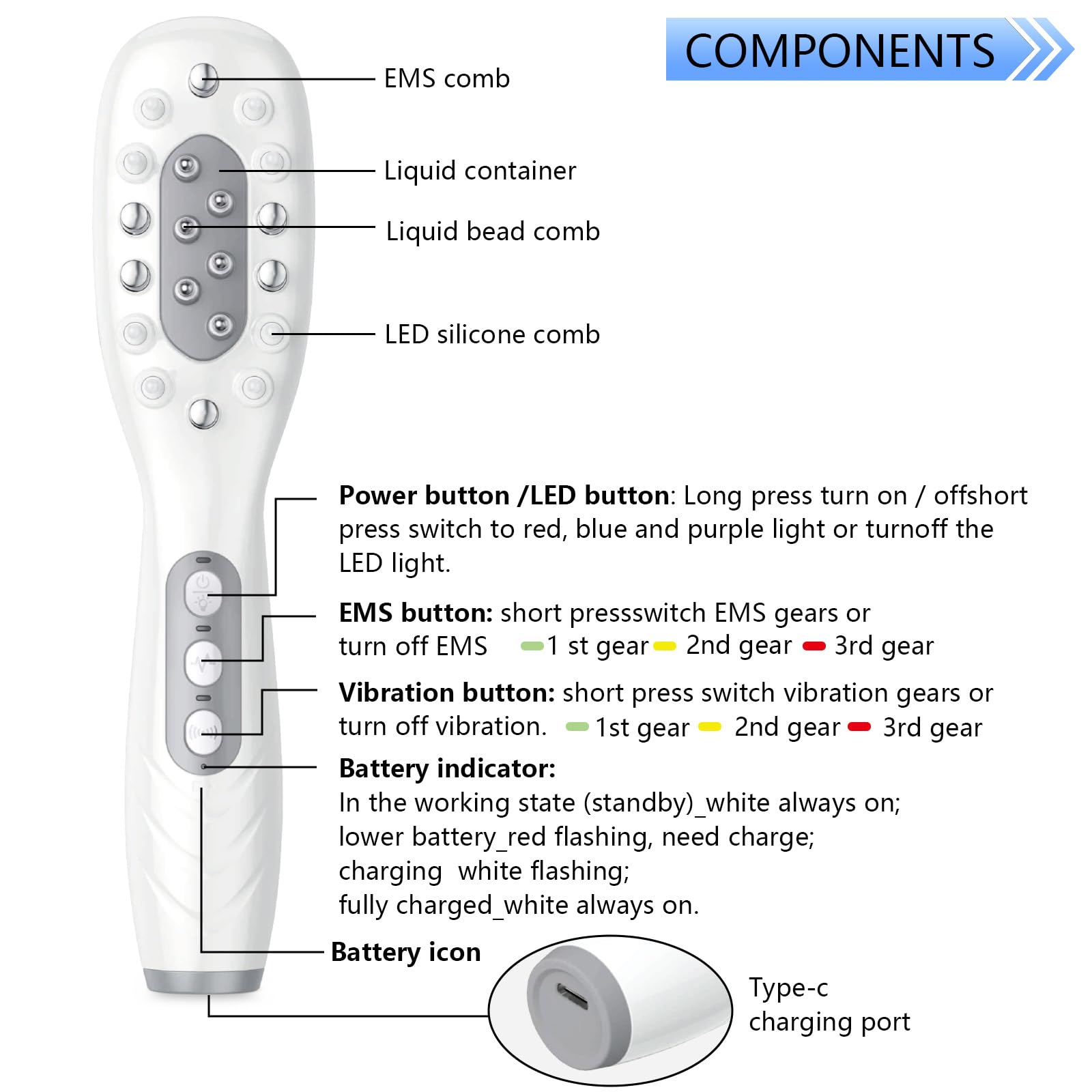 - Effortless & Comfortable Use:Ergonomically designed for a comfortable grip, the comb glides smoothly through the hair. The comb teeth part hair to direct laser energy precisely to the scalp—maximizing absorption and effectiveness. Its lightweight build ensures comfortable handling, whether at home or on the go
