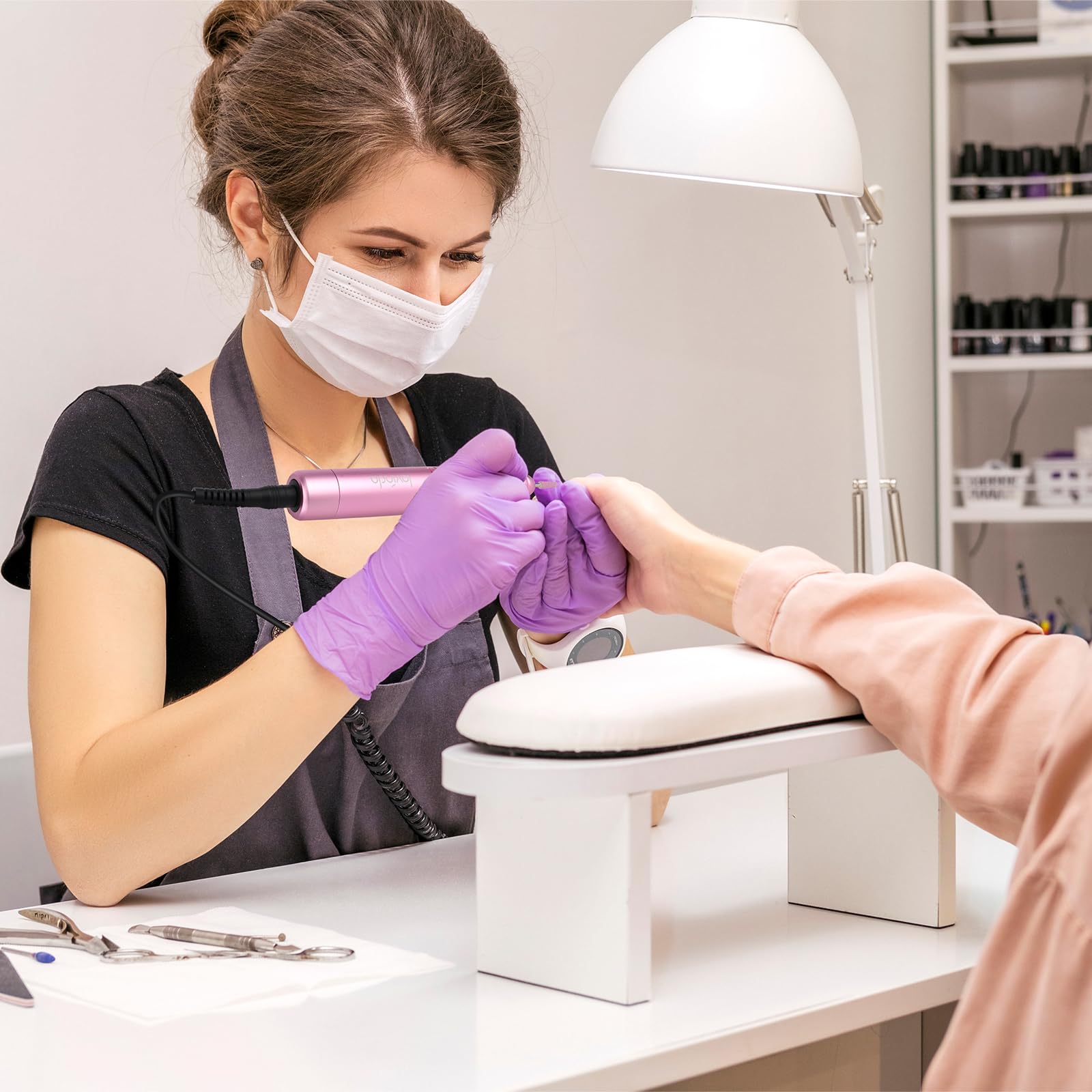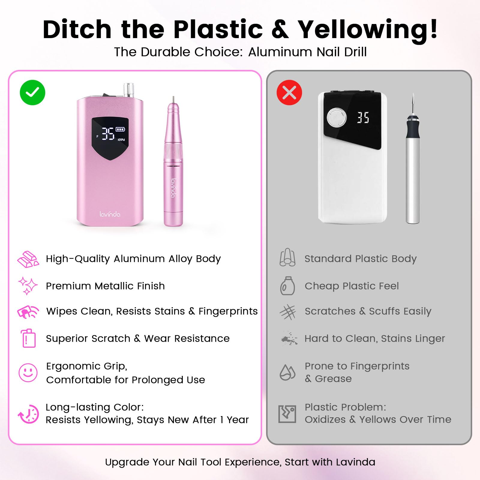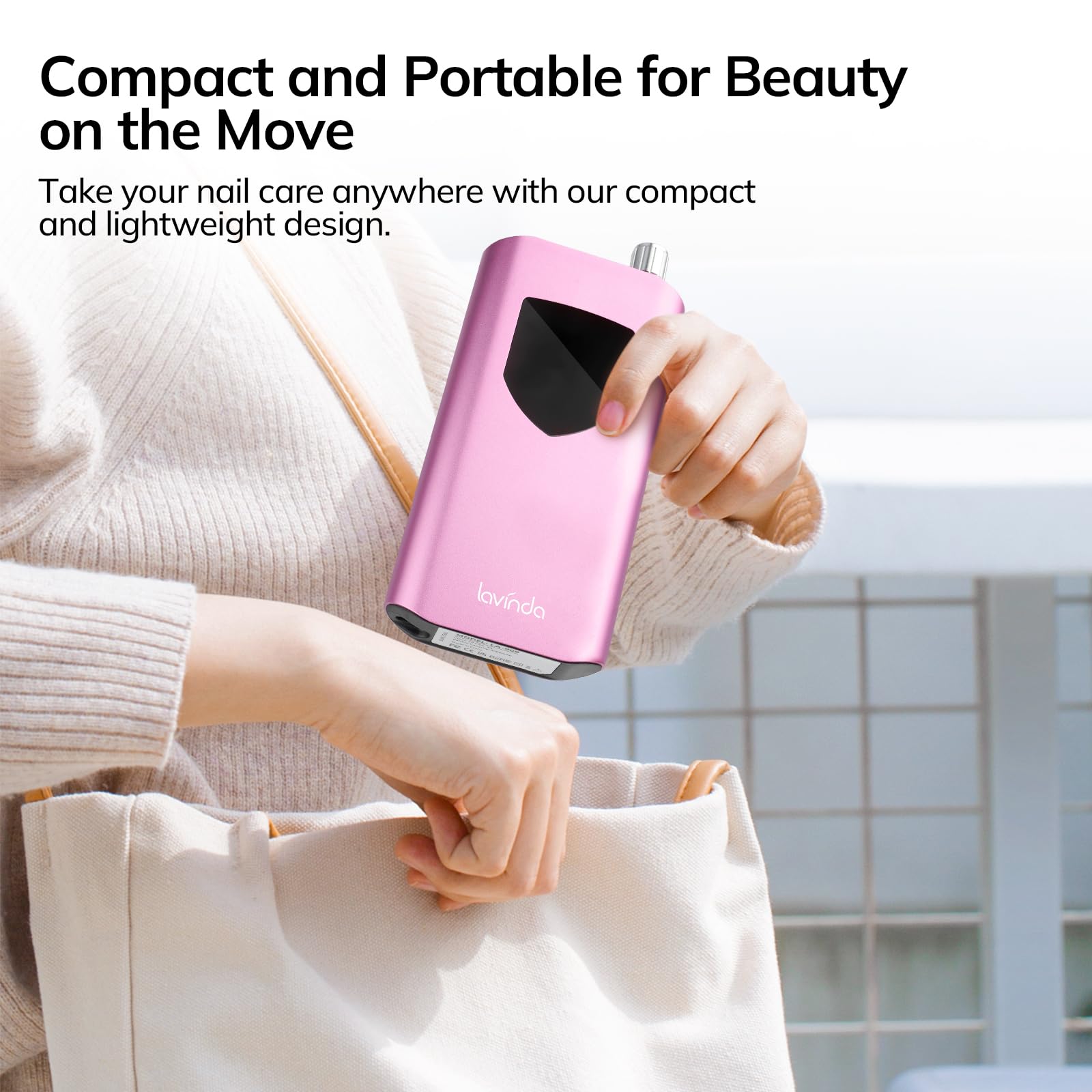 Lavinda Nail Drill 35000 RPM, Cordless Rechargeable Electric Nail File Machine, Professional Efile for Acrylic Nails, Gel Polish, Cuticle Removal, Home and Salon (Pink)