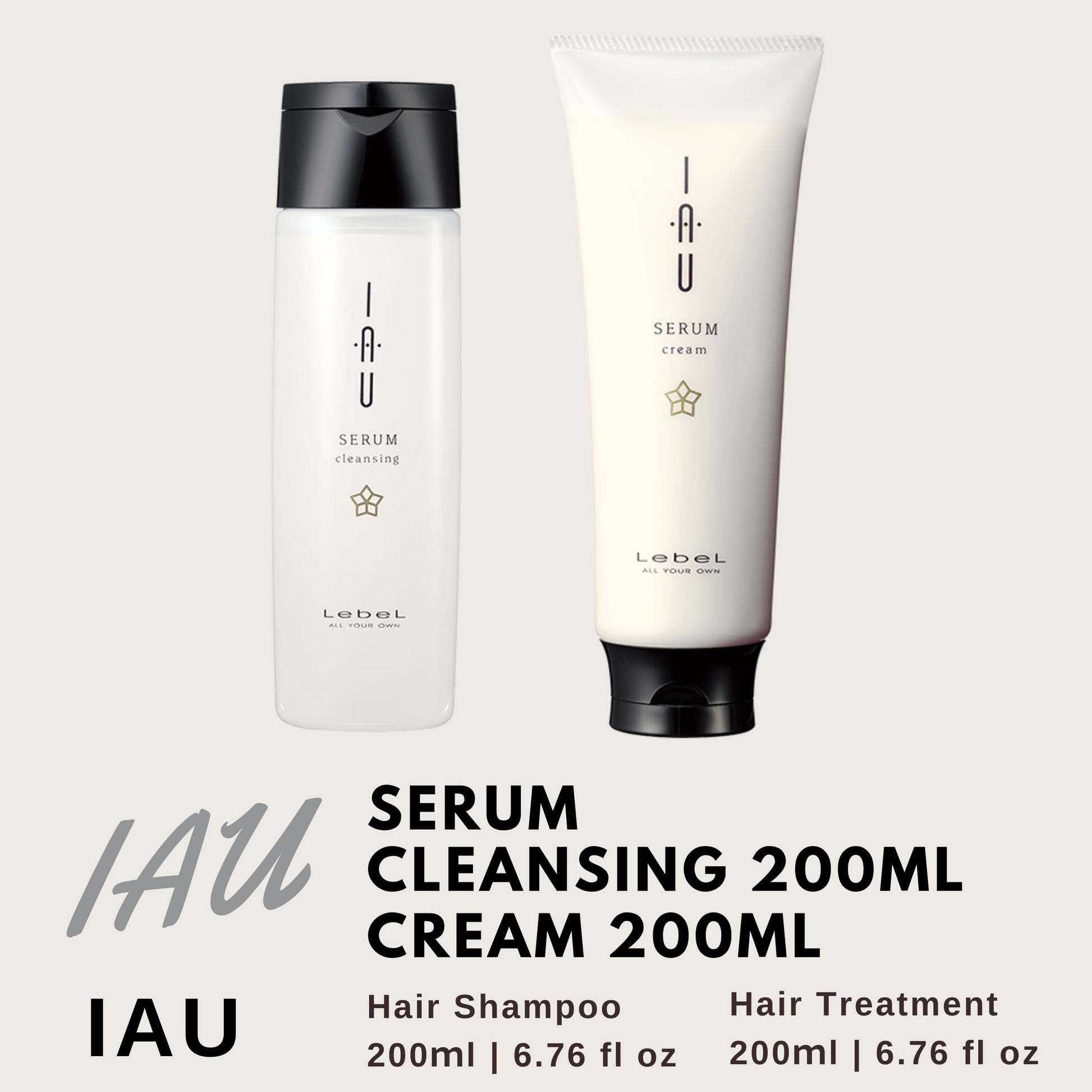 Details: Lebel IAU Serum Cleansing Hair Shampoo 200ml & Lebel IAU Serum Cream 200ml Set (Green Tea Set)