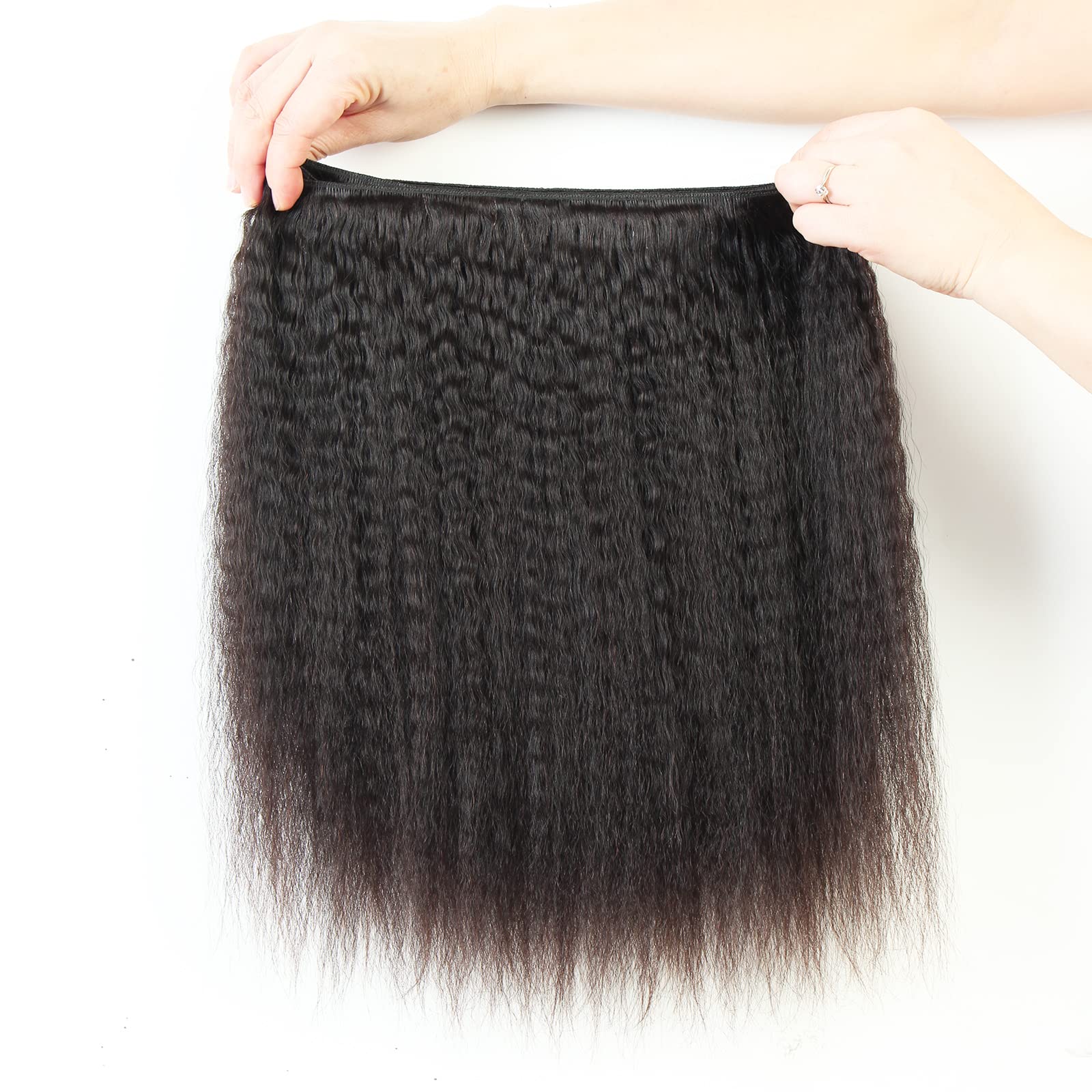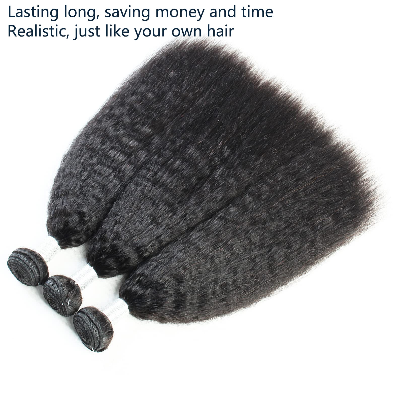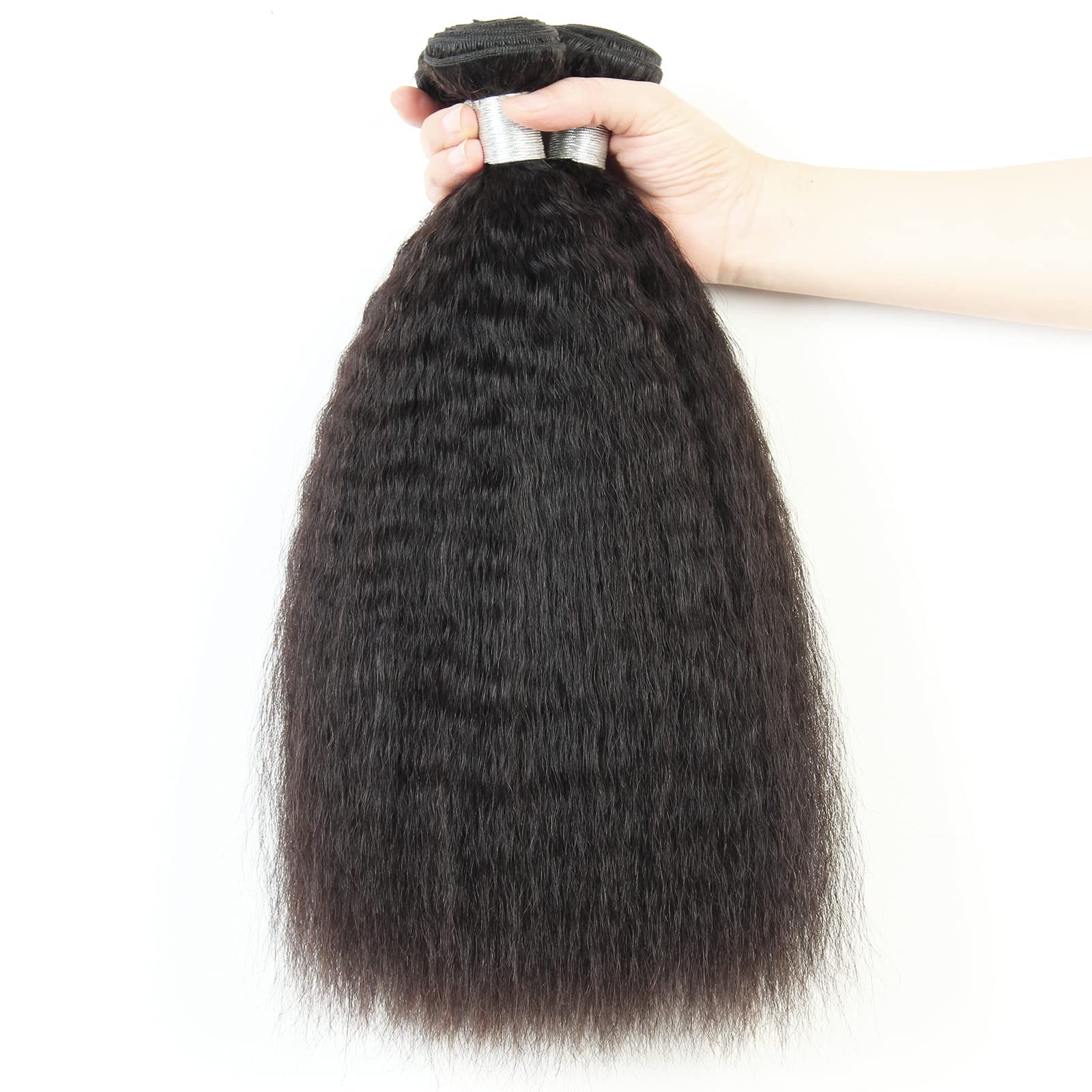 LINYINGYH Kinky Straight Bundles Human Hair Yaki Straight Bundles Weave 12 14 16 inch Real 100% Unprocessed Brazilian Remy Hair Extensions Natural Color 12a