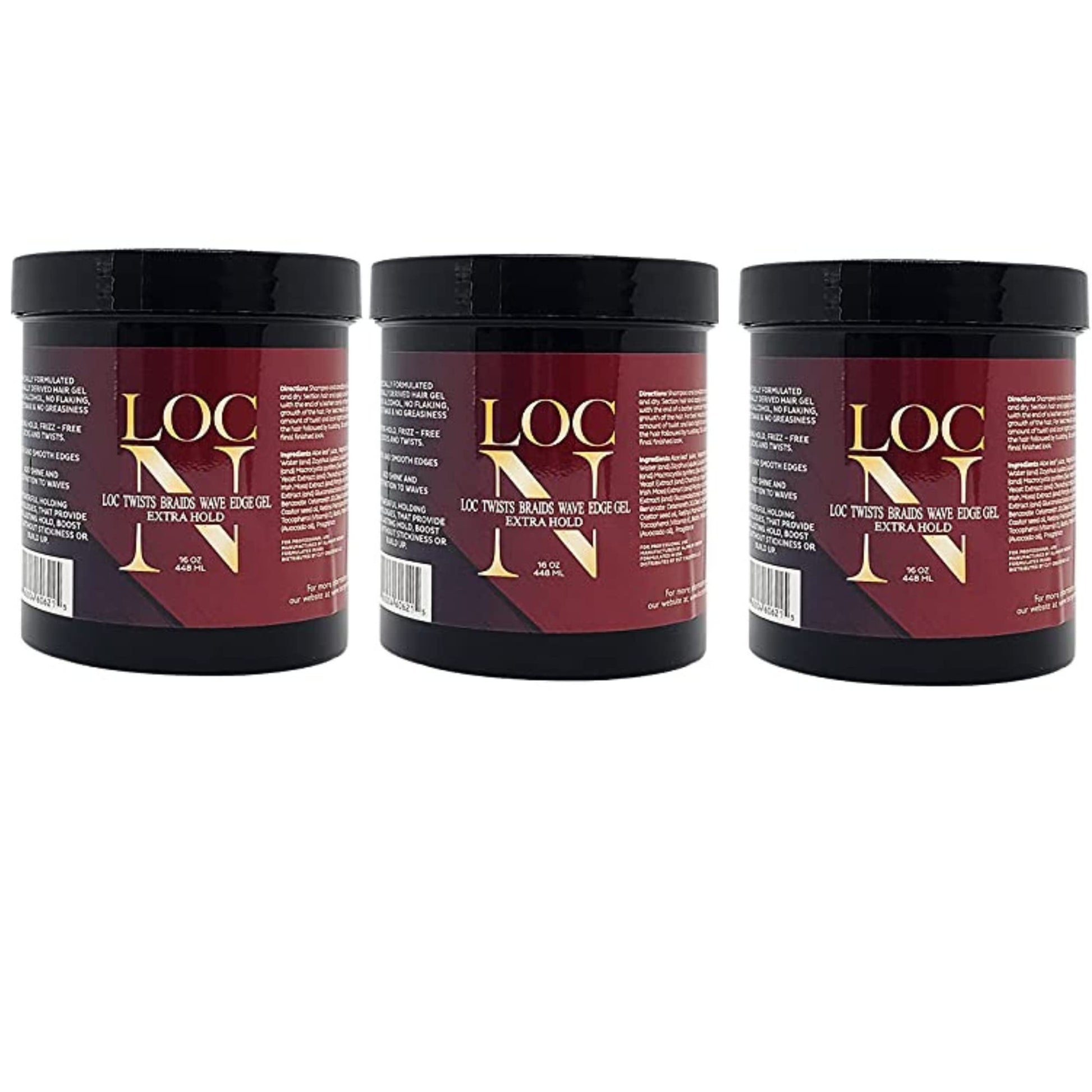 LOC N Edge Gel Extra Hold – Pack of 3 (16 oz Each) | Maximum Hold for Locs, Braids, Twists & Edges | Non-Greasy, Natural Ingredients, All Hair Types