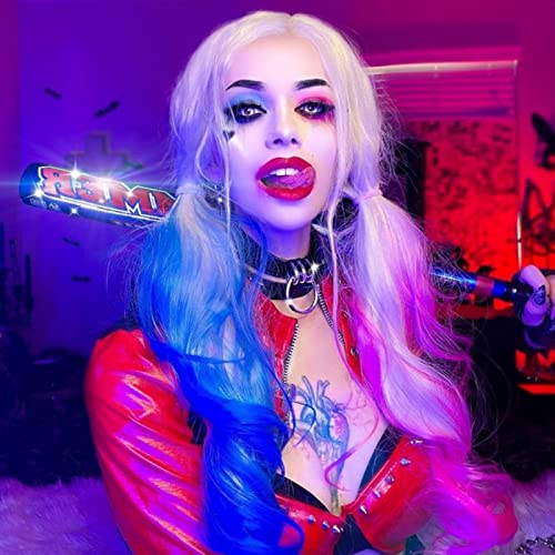 - ¡¼LACE MERMAID WIG STYLISH STYLE¡½lace front mermaid wig,this harley quinn wig Ombre Blonde Pastel Pink Blue Long Curly Wavy Half Wig looks special and stylish. wig pink blie half,Drag queen, Beautiful Girls, Women, Ladies. pink half blue pastel blue wigs for women,pink and blue wig you can wear it to various theme parties like Birthday, Halloween, Christmas, Fancy Dress, Party and themed Events Cosplay, Costume Party, Weddings,Dating,Daily use or Gift sending to friends , fashion and attractive, adding more charm and fun.also you can restyle it to the length you need